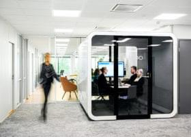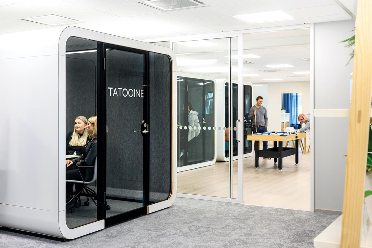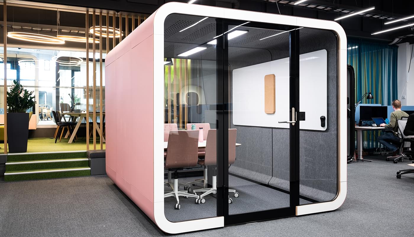 Farklı boyut ve renk seçenekleriyle sunulan akustik kabinler, hem tek kişilik odaklanma alanı hem de dört kişilik mini toplantı odası olarak kullanır. Ayrıca şık tasarımları sayesinde ofis estetiğini de destekler.