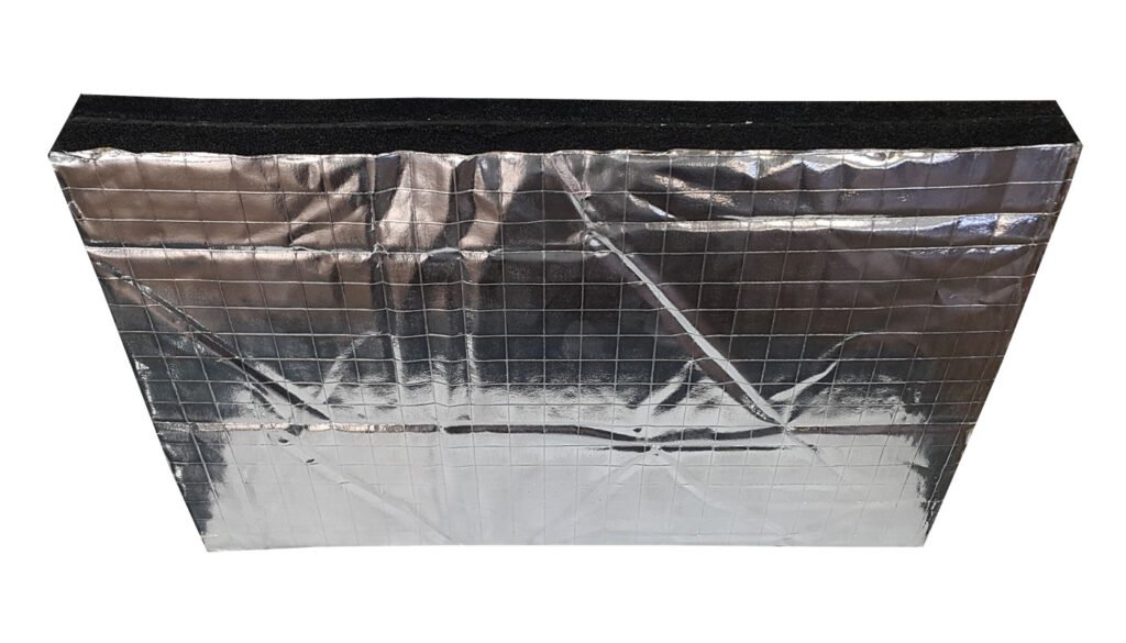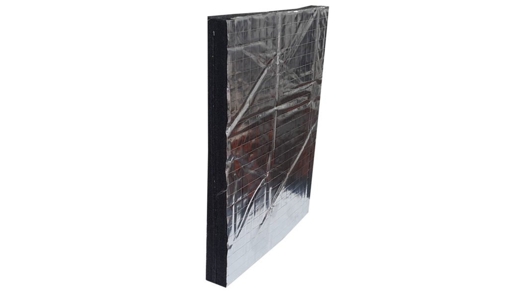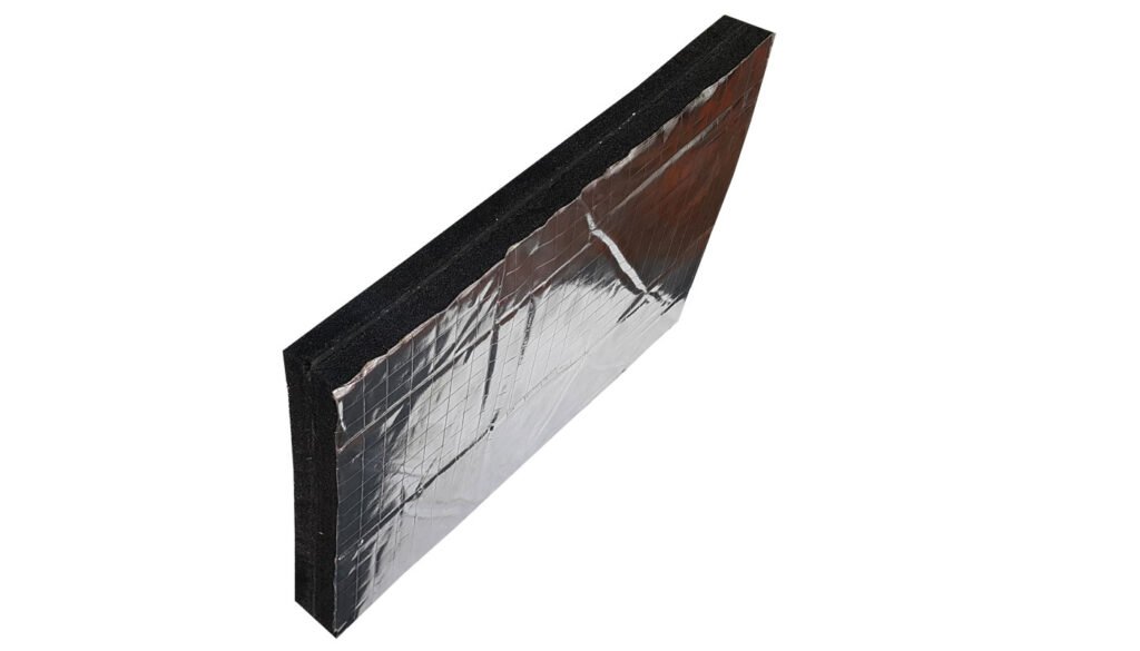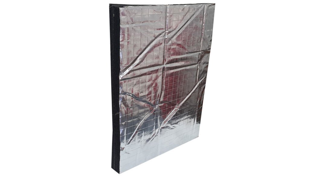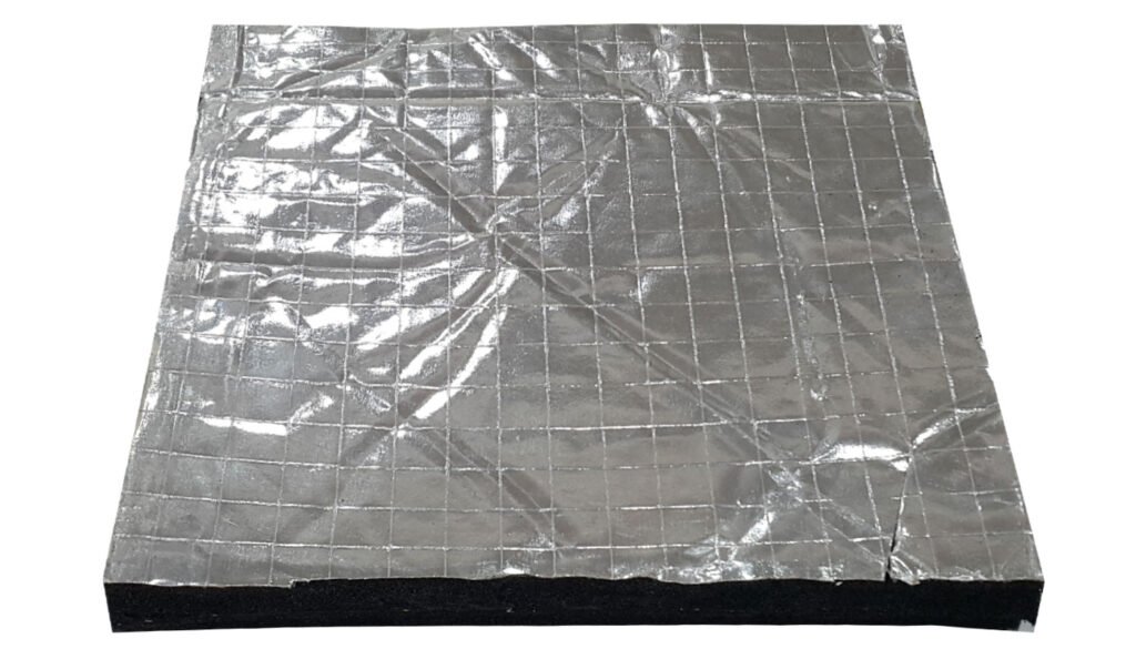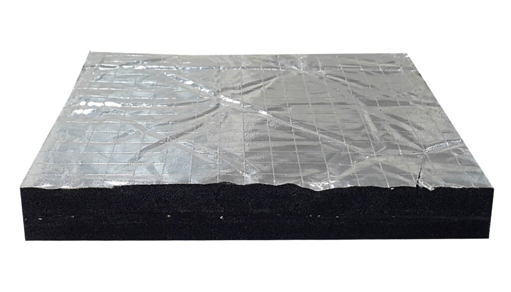 Alüminyum folyo kaplı akustik sünger, poliüretan veya elastomerik yapıya sahip süngerlerin üzerine yüksek ısıya dayanıklı alüminyum film kaplanarak üretilir. Bu özel yapı sayesinde hem ses yalıtımı hem de ısı yalıtımı görevini aynı anda yerine getirir.